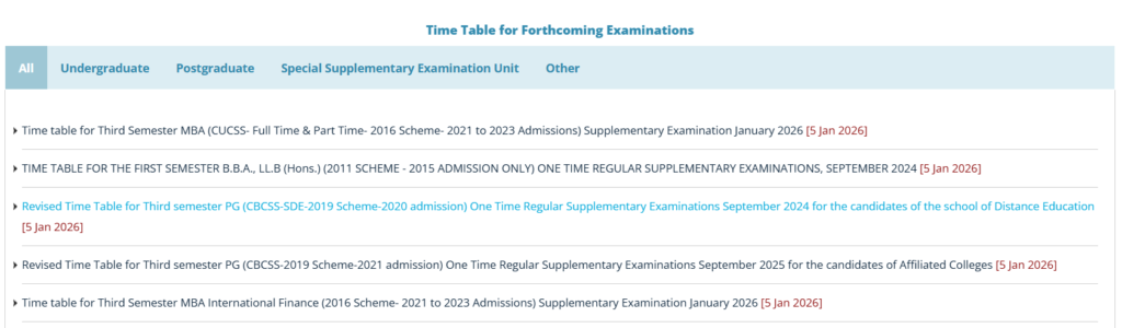 Calicut University Time Table 2026 Overview