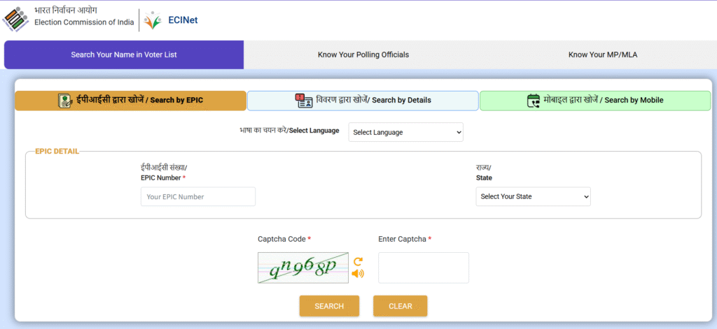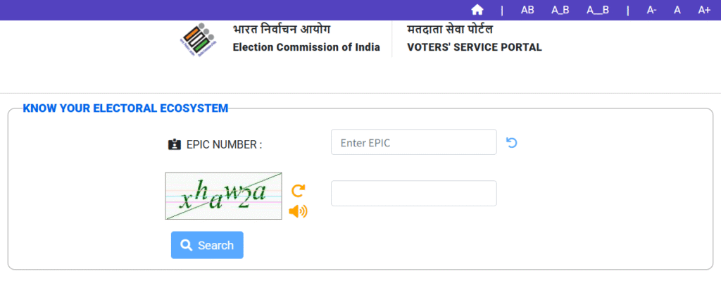 Step 2: Now, enter your EPIC number, Captcha and click on search button.