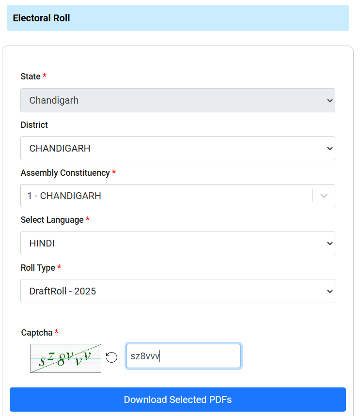 Download CEO Chandigarh Voter List 2025 Electoral Roll PDF