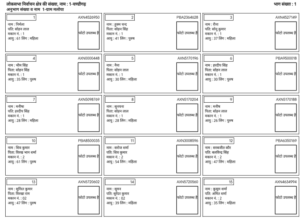 | Voter List Includes | Name, Photo, Address, Voter ID, Polling booth details |