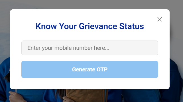 Step 3: Pop up the “Know Your Grievance Status” Page and enter the mobile number.