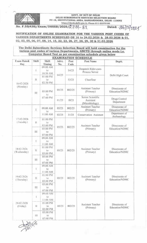 Candidates looking for the official document can find the DSSSB Exam Schedule 2026 PDF on the board’s website. This document is crucial as it contains the specific Post Codes, Shift Timings, and Exam Days for each candidate.