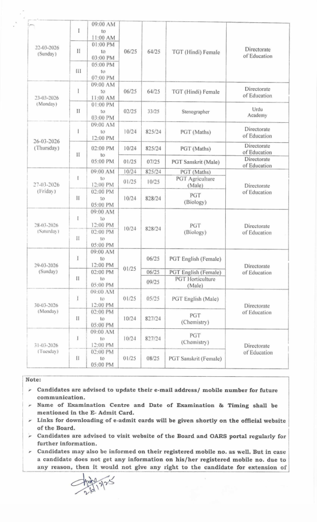 | PGT (Maths) | 825/24 | 26-03-2026 | Shift I 09:00 AM–12:00 PM Shift II 02:00–05:00 PM |
