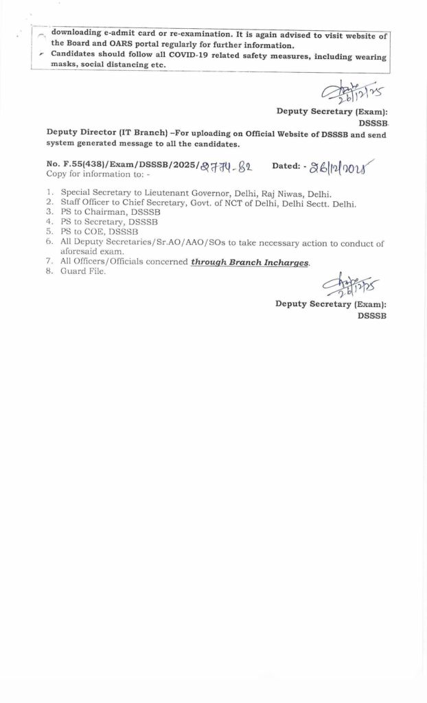 DSSSB Exam Schedule 2026 Download PDF Link
