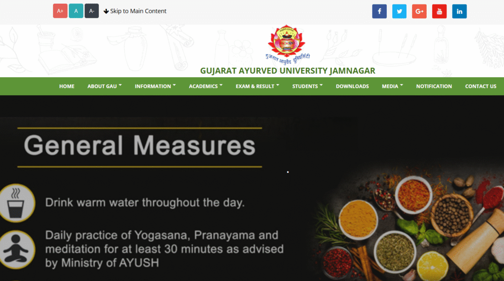 Step 1: Visit the official website: ayurveduniversity.edu.in.