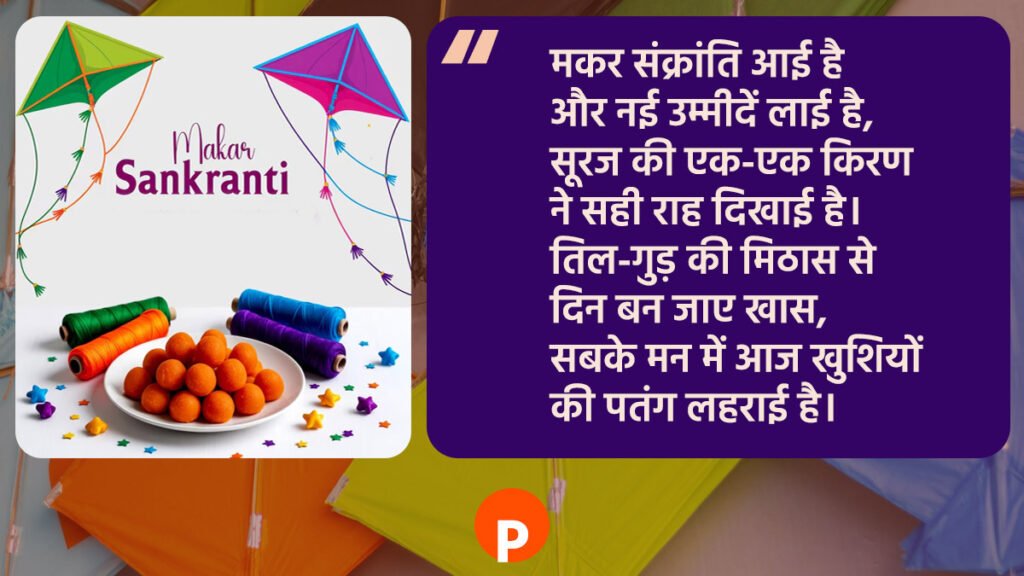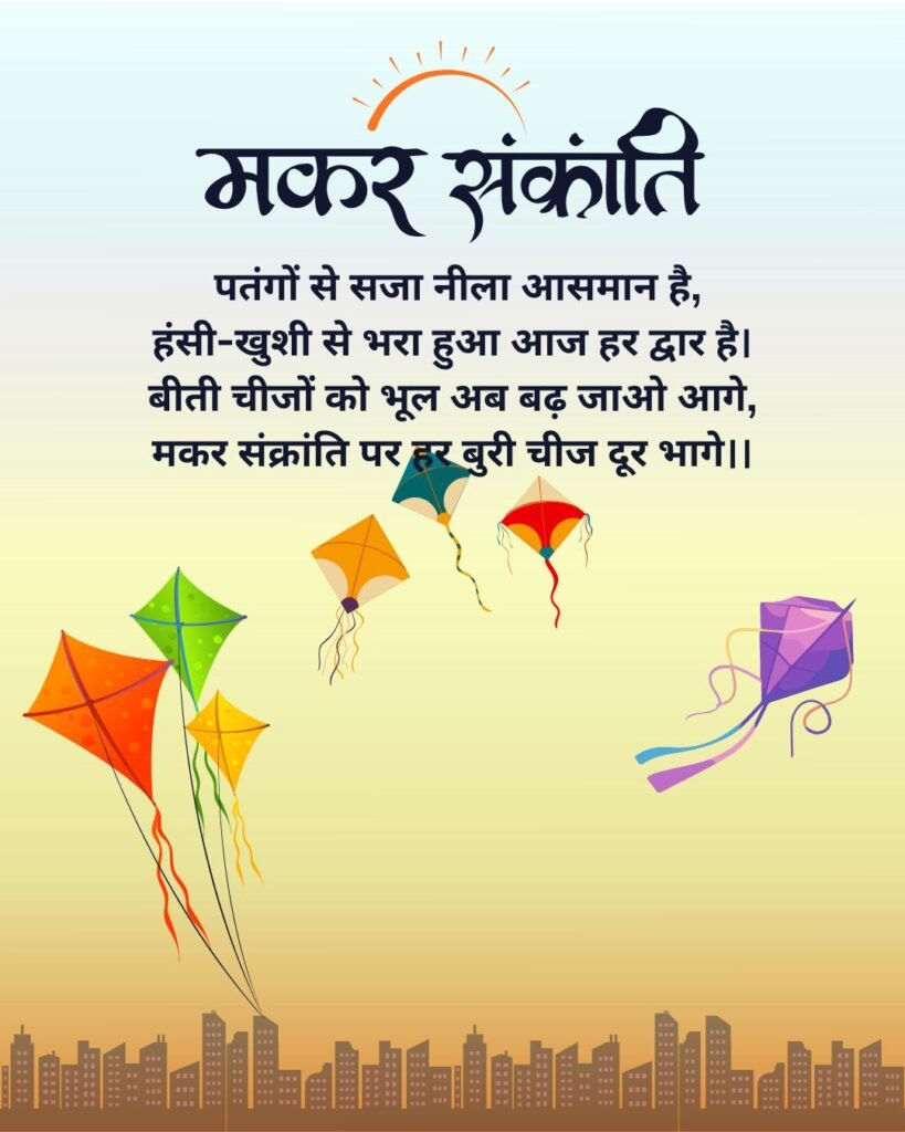 “Uttarayan ka suraj chadha, Nayee ummeed le aaya, Jeevan mein sukh aur samridhi, Makar Sankranti ne dilaya. Khush raho hamesha!”