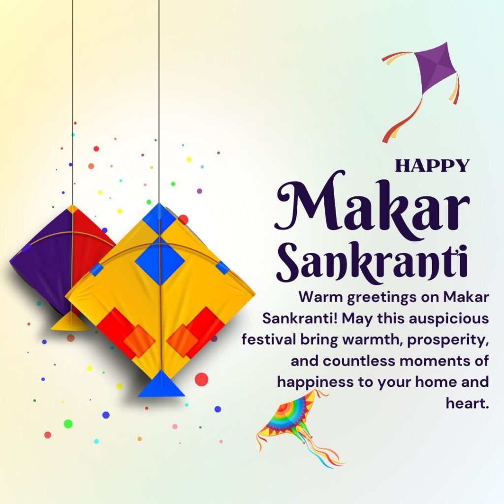 “Warm greetings on Makar Sankranti! May this auspicious festival bring warmth, prosperity, and countless moments of happiness to your home and heart.”
