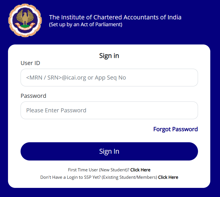 Step 3: In the login page, enter your ICAI User ID or Student Registration Number (SRN).