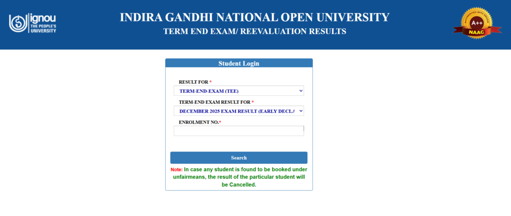 IGNOU Result 2026, Indira Gandhi National Open University TEE December 2025 Result at ignou.ac.in, Direct Link to Download UG and PG Courses Result
