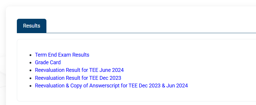 Step 3: You will see a list of result links. Click on “Term-End” and then select “December 2025 Exam Result (New)”.