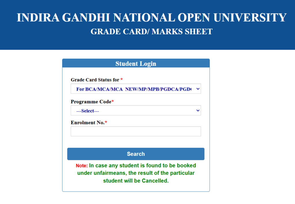Your IGNOU Result 2026 grade card will open in detail showing: