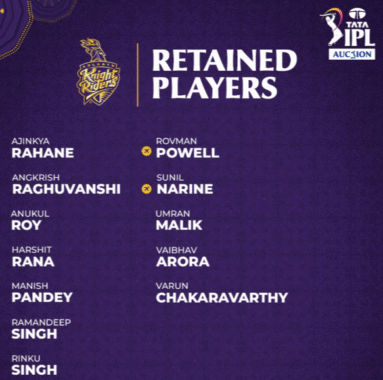 Kolkata Knight Riders - KKRRetained Players 2026