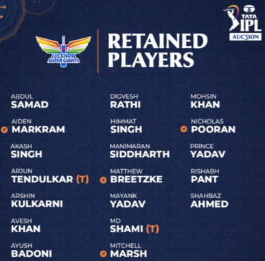 Lucknow Super GiantsRetained Players 2026