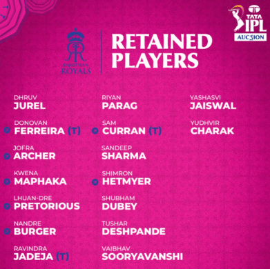 Rajasthan Royals Retained Players 2026