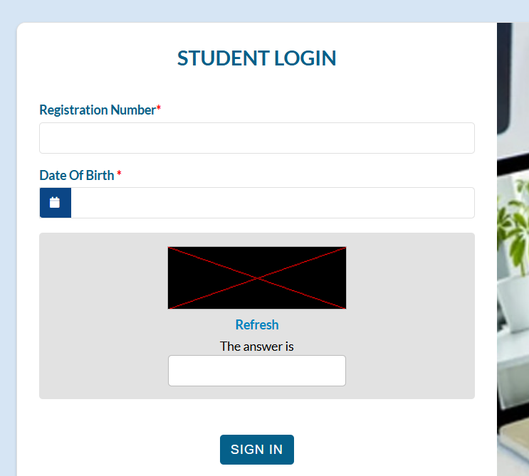 Step 5: Now, enter your registration number and date of birth in the provided fields.