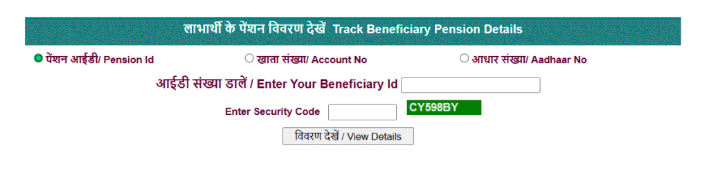 Step 3: Now, Track Beneficiary Pension Payment by Pension Id or Account No and Aadhaar No.