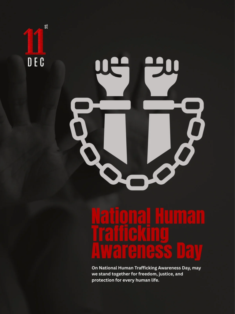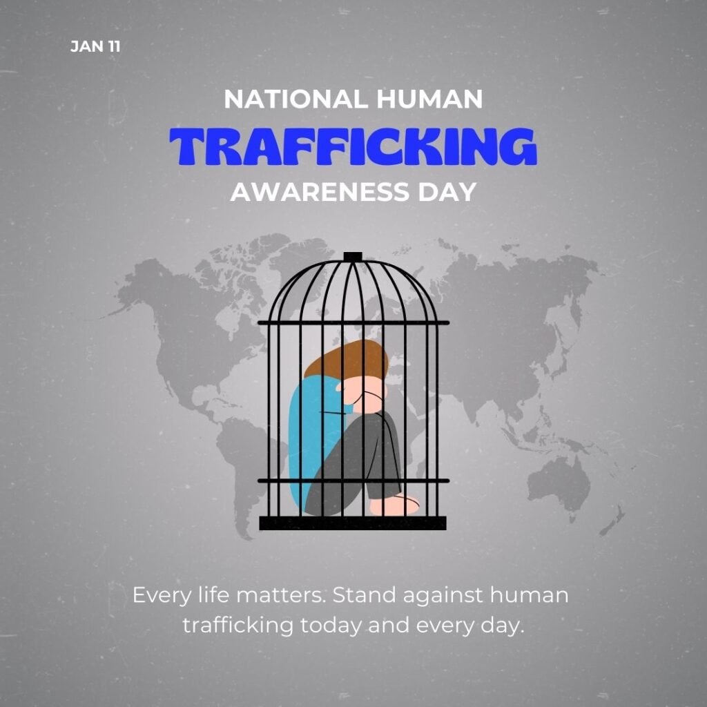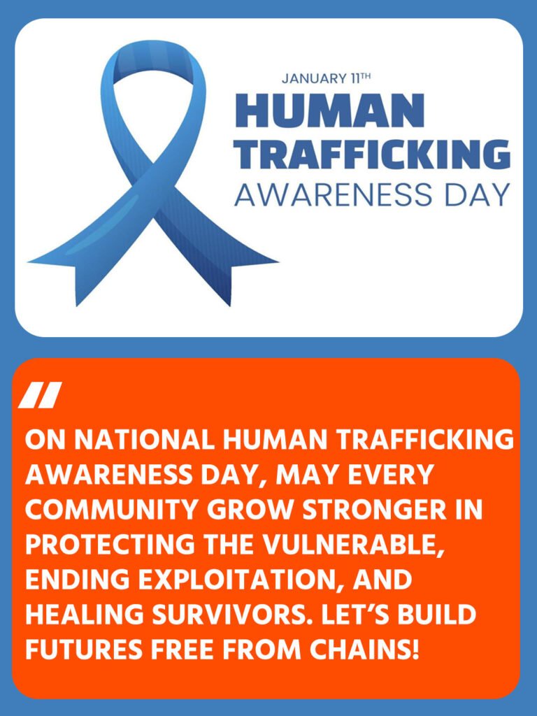 “Jan 11: Human Trafficking Awareness Day. Strong bonds prevent crime. Stay connected, stay safe! #EndTrafficking”