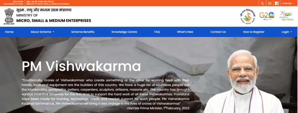Step 1: Visit the official website pmvishwakarma.gov.in.