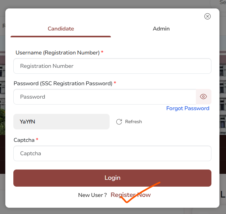 Step 2: Click on the “Register Now” or “New User Registration” link if you are a first-time applicant. Existing users can directly login using their Registration ID and Password.