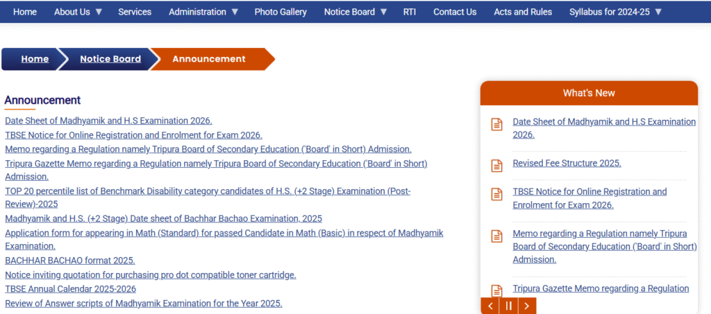 Step 1: Visit the official website of Tripura Board of Secondary Education at tbse.tripura.gov.in.